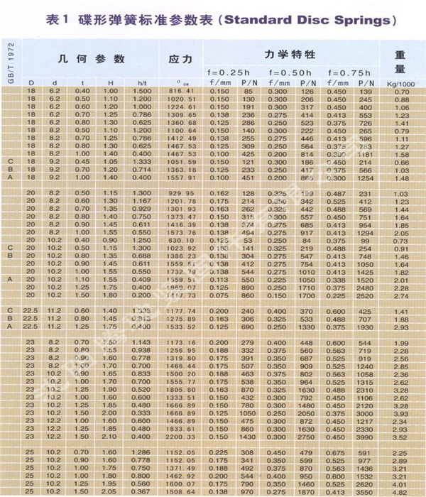 3.用同样的碟形弹簧采用不同的组合方式,能使弹簧特性在很大范围内变化。可采用对合、叠合的组合方式,也可采用复合不同厚度,不同片数等的组合方式。